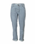 9 oz. midweight stretch woven denimEnzyme washed, silicone softenedAntique nickel hardware28" inseam98% cotton / 2% elastane